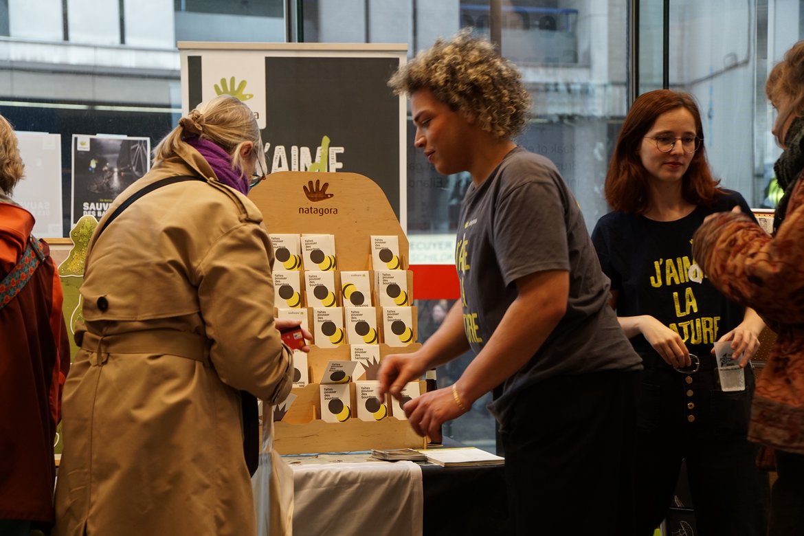 Stands : Natagora Bruxelles, Aves Bruxelles-brabant, Ligue royale de protection des oiseaux, We are Nature, Les amis de la Foret de Soignes, Hierba Buena, Laine Fleurie, Natuurpunt, Apis, La ville est un jardin, QueerxNature